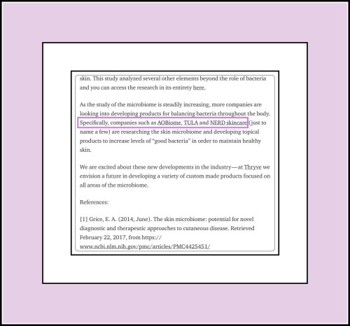 My son had begun their program to address different health concerns. I decided to wait and see what kind of results he had before making a decision about whether or not to try that option too. While reading up on Thryve I read a few blog posts they wrote on Medium and in this post which mentioned a few companies who are actually using probiotics in their skin care lines. This unique approach should warrant its own additional research,