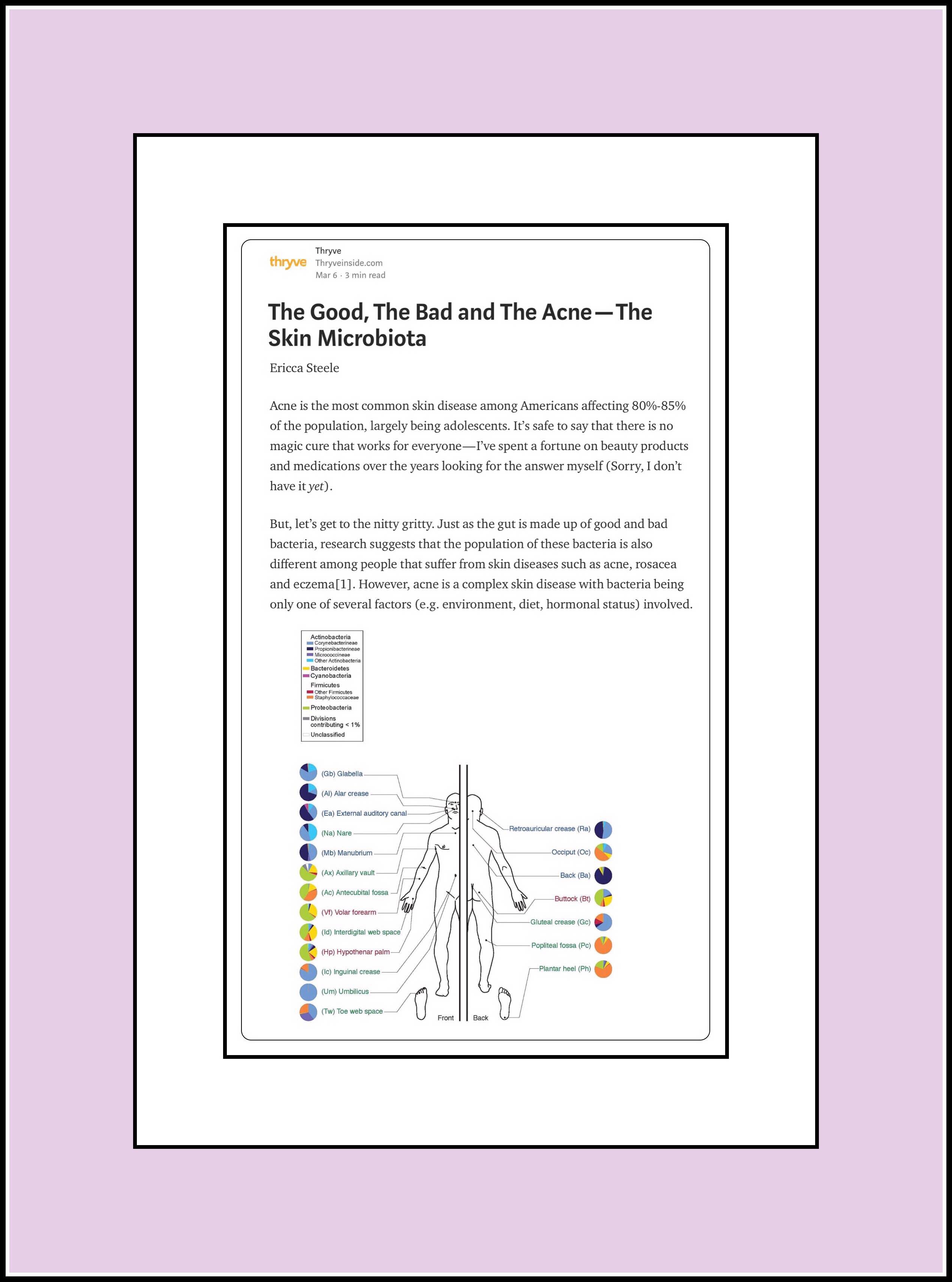 My son had begun their program to address different health concerns. I decided to wait and see what kind of results he had before making a decision about whether or not to try that option too. While reading up on Thryve I read a few blog posts they wrote on Medium and in this post which mentioned a few companies who are actually using probiotics in their skin care lines. This unique approach should warrant its own additional research,
