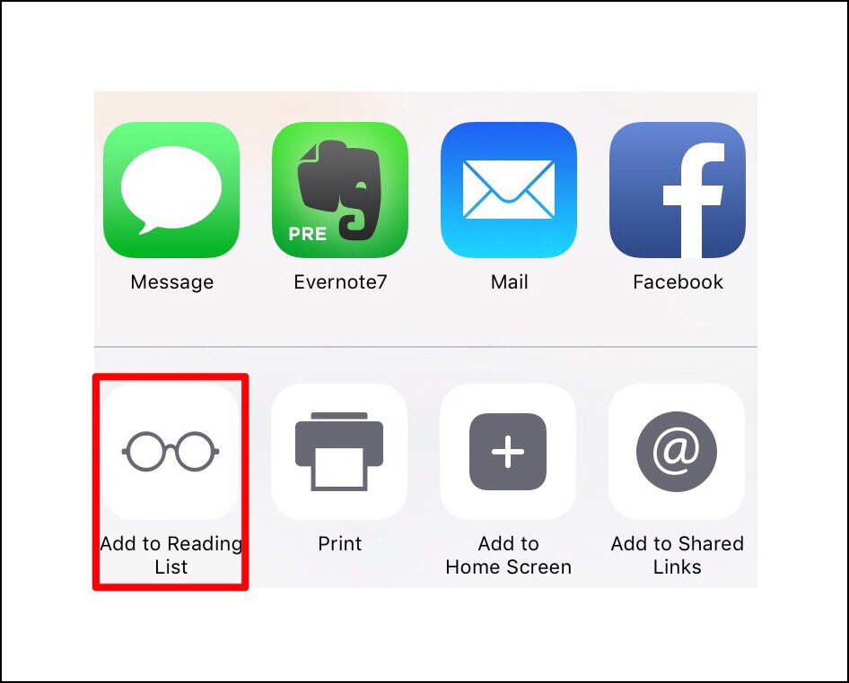 When you tap on the 5 lines Reader mode is engaged…it’s wonderful for creating a distraction free, pleasant, mobile reading experience. You can also save things to read later in Safari by tapping on the share icon in the upper right hand corner of Safari and then looking for the ‘spectacle‘ icon shown below.