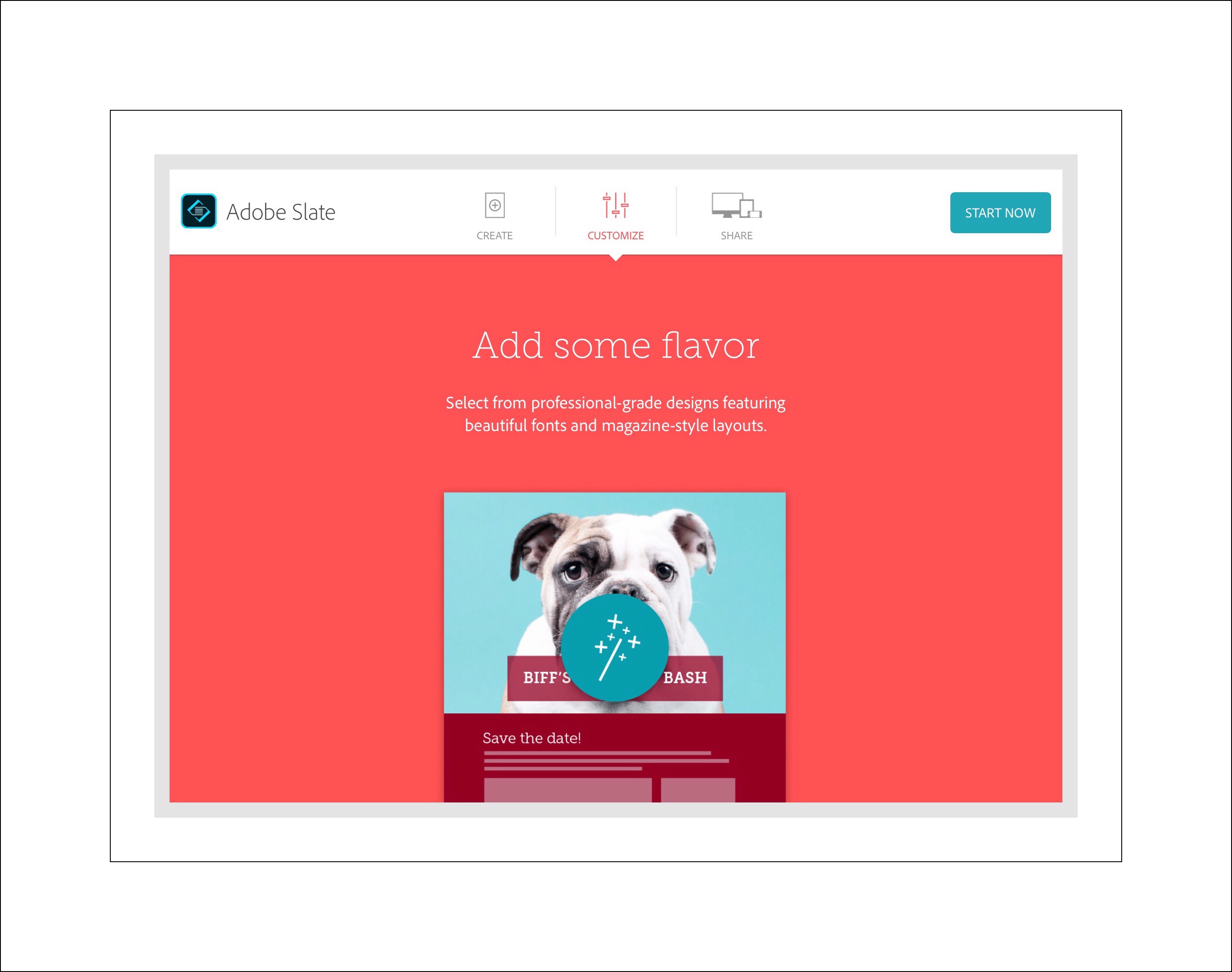 You need the email or Facebook account to create and signin to an Adobe ID and Adobe’s Creative Cloud Service. Anyone who setups this free account gets 2GB’s of free storage. Be forewarned that Adobe will try to upsell you a 20GB plan for $1.99 a month…but don’t even consider this because I’ve been using many of Adobe’s Creative Cloud apps for years and I’m nowhere near the 2GB limit yet. Plus that, your new Slate creations won’t even count against your Creative Cloud storage. Rather, Adobe provides a link for your new site that they host for free at Slate.com.