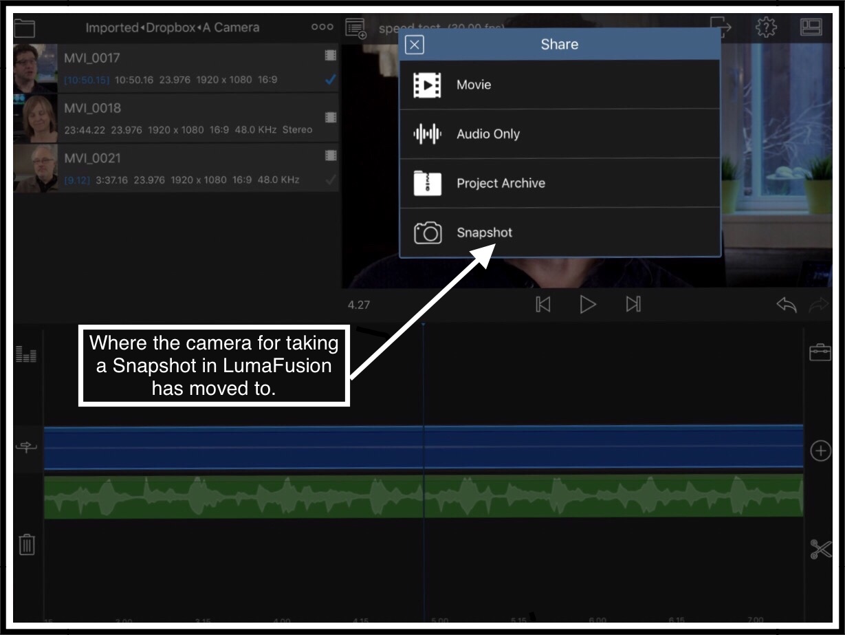 LumaFusion Snapshot Camera Location